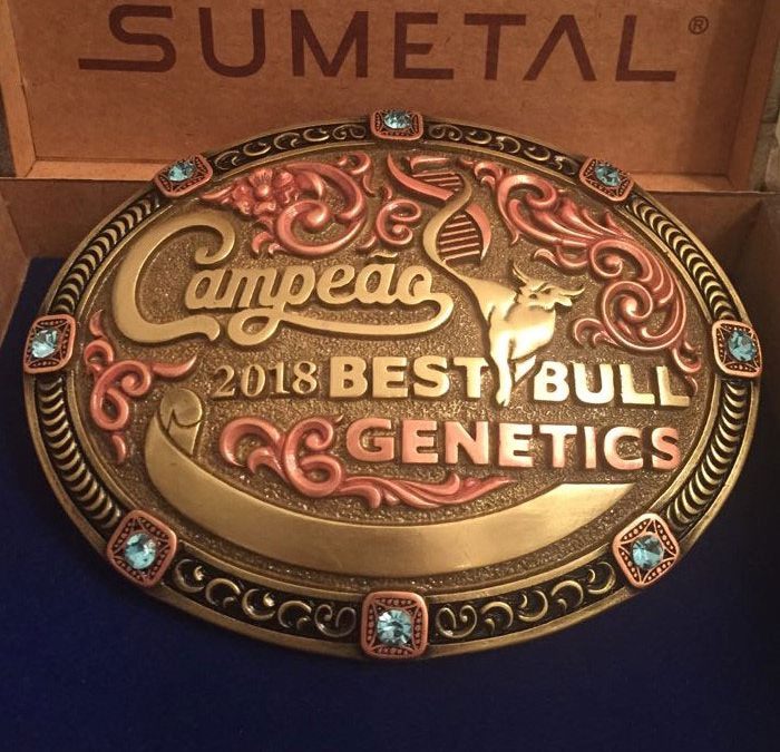 Abaixo, os proprietários do Touro Lega Lize, Tiaguinho e Leandro Camerro, recebendo a Fivela de Campeão da 1ª Etapa das mãos do Paulo Belarmino, um dos fundadores da Best Bull Genetics.